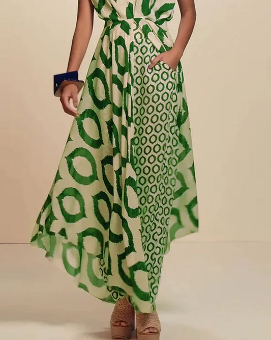 Completo Due Pezzi Casual Senza Maniche a Fantasia con Vita Sottolineata